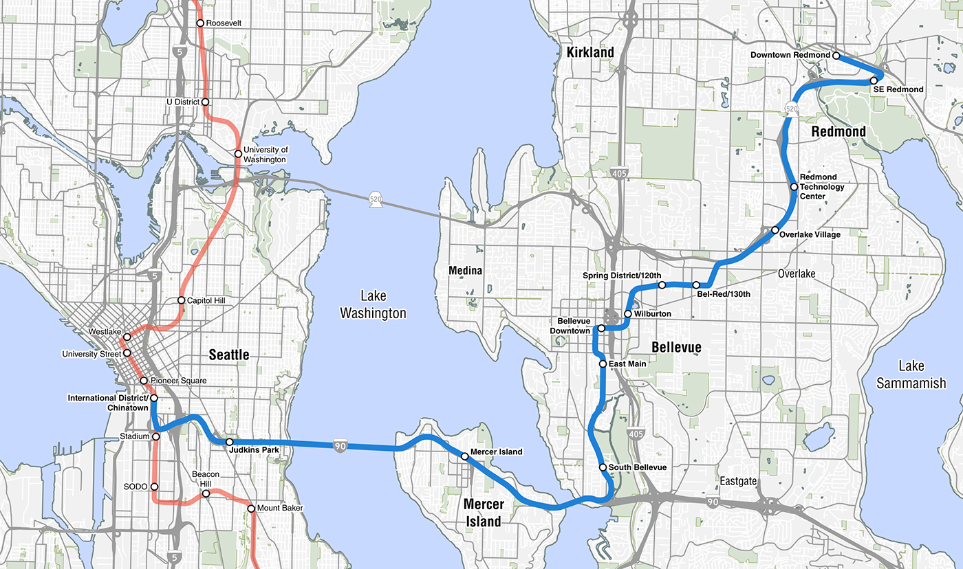 Come tomorrow, the 2 Line will serve the following stations: South Bellevue, East Main, Bellevue Downtown, Wilburton, Spring District, BelRed, Overlake Village, Redmond Technology, Marymoor Village, and Downtown Redmond.