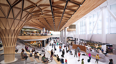 The new floors will be programmed with 13 dining and retail spaces, a feature seating stair in a central gathering area, premier lounge space for Alaska Airlines, an airfield viewing platform, an interfaith prayer and meditation room, a nursing room, and other services and amenities.