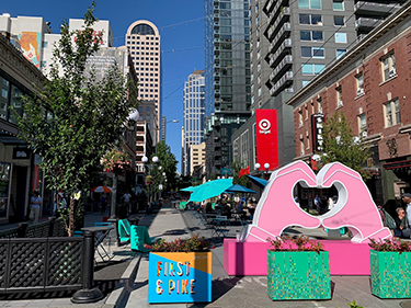 Mayor Bruce Harrell joined civic and community leaders yesterday to celebrate the completion of pedestrian and bicycle improvements on Pike and Pine streets between First and Melrose avenues.