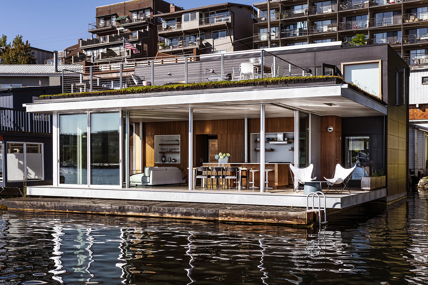 Dyna began building floating homes in 2009 and continues today as Seattle's only home builder with a permanent shoreside facility to build new concrete floats and construct multiple water-bound homes simultaneously, according to their website. They established Dyna Docks in Ballard in 2016. Founder Ren Chandler (a great last name for a floating home builder as it literally means dealer in shipping supplies) is a life-long sailor, and staff members boast spending their spare time on the water, boating, kayaking, paddleboarding, and the like.