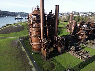 SEATTLE — The Seattle Landmarks Preservation Board on Wednesday denied an application from Seattle Parks and Recreation to allow for removal of some ladders and pipes from the former gasification towers at Gas Works Park.