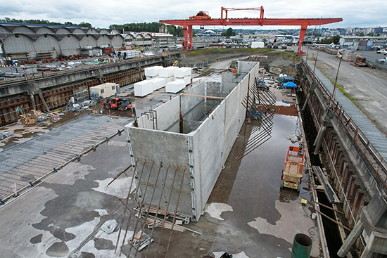 CTC, a PCI-certified precast concrete fabricator, manufactured the new caisson in house using its own dry dock. Construction of precast elements took about four months, and final assembly took approximately five months.