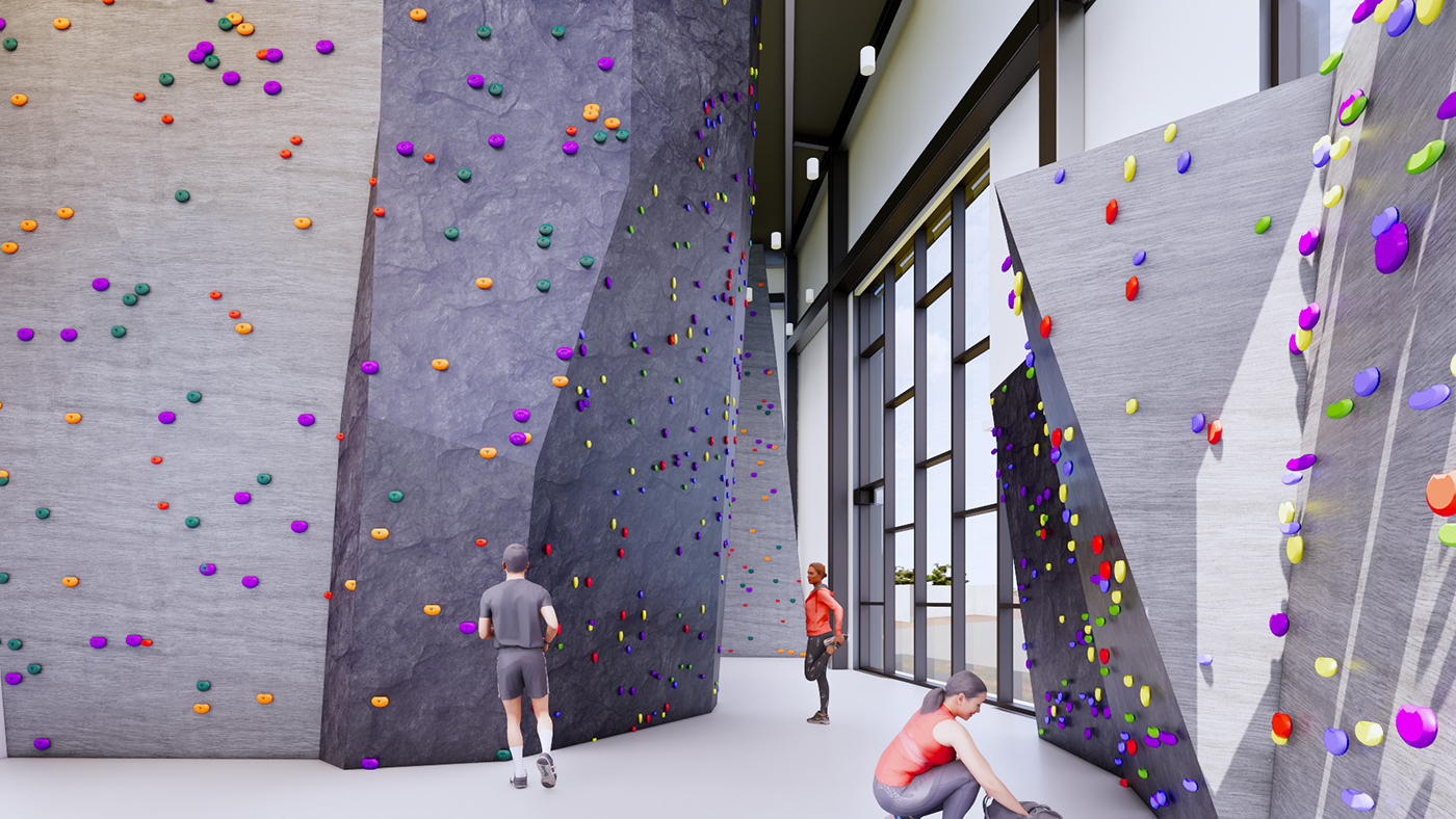 Early in the design process, the team used foam blocks to explore how programs could be arranged throughout the building. This exercise helped visualize how a climbing gym, medical services, and gathering spaces could coexist while maintaining a natural flow.