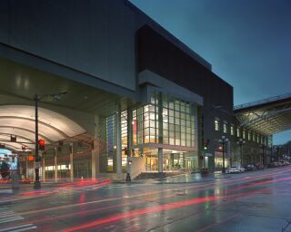 Between the gray lid and skybridges of the expanded Washington State Trade and Convention Center, the corner of Eighth and Pike glows like the lights of someone who is clearly home.