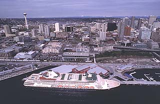 Photo courtesy of Hollard America Line Holland America's Veendan docks at the Bell Street Pier in Seattle. The Veendan will be one of the ships that will make Alaska runs next summer. |