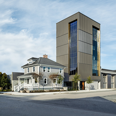 Pyrrha’s Vancouver studio consists of a historic single-family house turned showroom and a new-construction six-story production tower.