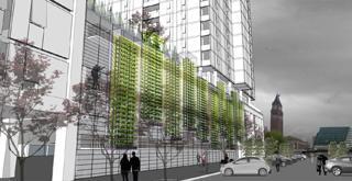 The Stadium Place plots won't be your regular farms. One will be on top of a podium that supports three high rise apartment towers. It will be part of the outdoor space for residents. The other plot will be attached to a parking garage wall at the base of an office building. Daniels wanted low-tech, off-the-shelf solutions for both of these projects, and turned to Seattle architect Susan Jones of atelierjones.