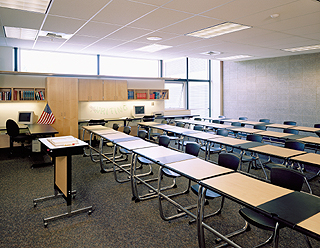 Photo courtesy of Integrus Architecture The state Health and Safety Guide includes a checklist to help designers and planners anticipate a school’s needs. Considerations such as appropriate lighting and acoustical controls figured into the design for this White River High School classroom in Buckley. |