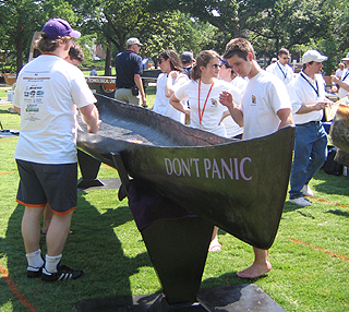 “Actually building the canoe is only part of the competition, there is also a ton of time that goes into the academic/professional side: designing the hull, fundraising, writing the design paper, the display and preparing the technical presentation,” said Jennifer Kipp, 1998-99 UW concrete canoe team co-captain.