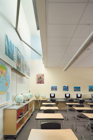 Our research showed that schools in New Hampshire and Minnesota were using the system, so we began to research their experiences. We then developed the concept for Wilson that introduced supply air from under the casework along the windows and in one of the opposite corners of the room. It was in looking at how to exhaust the air that the true integration of the design occurred.