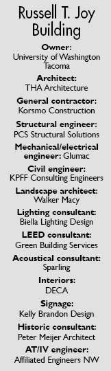 The Joy Building is a critical component in UW Tacoma’s efforts to accommodate the university’s increased enrollment and meet the demand for higher education in the central Puget Sound region.