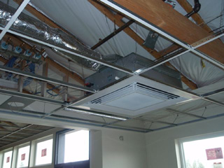 • Fewer air-handling units. Unlike a traditional ground-coupled heat pump system, where there can be one heat pump per classroom, the induction system uses just one small air-handling unit to serve six to eight classrooms. Fewer air-handling units mean using less mechanical space and structural support, which results in decreased construction costs.