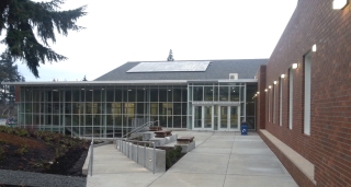 A rooftop solar panel system was installed that can produce 16,500 kilowatt hours of electricity per year. Its performance can be monitored by an interactive touchscreen that doubles as a teaching tool for students.