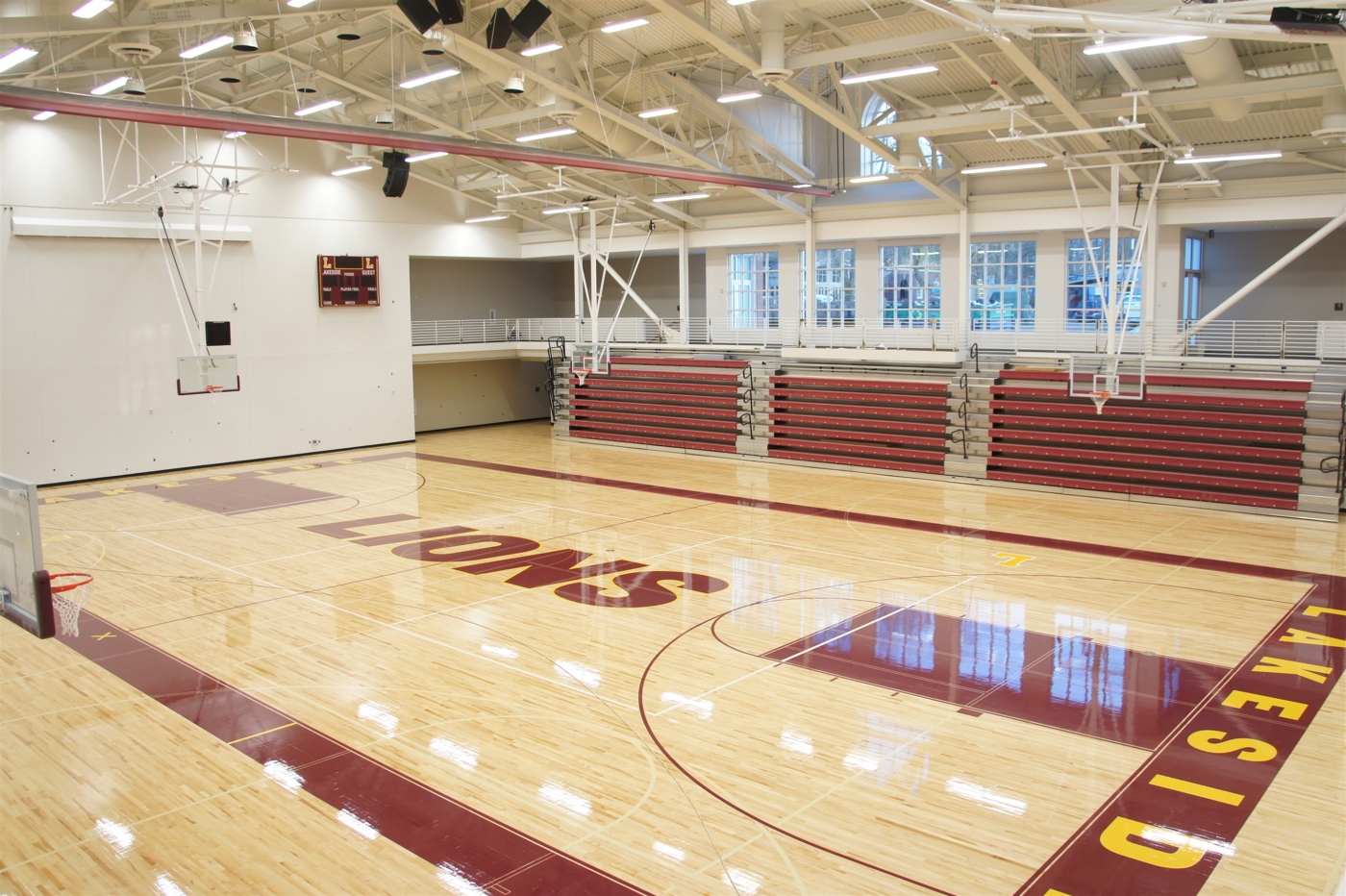 It has the Ackerley Gymnasium with seating for 800 and an NCAA regulation basketball court; the fieldhouse gymnasium with an additional full-sized basketball court; space for strength and cardio equipment; a mat room for wrestling practice; three classrooms rigged for audio-visual presentations; locker rooms; offices and meeting spaces; a lobby with event space; and increased storage.