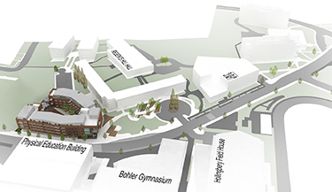 A courtyard with tiered seating for small concerts and other events will be accessible from the ground level. The tiered seating will lead to a roof terrace overlooking the soccer field. Sweeney said the space could also be used for dances or movies.
