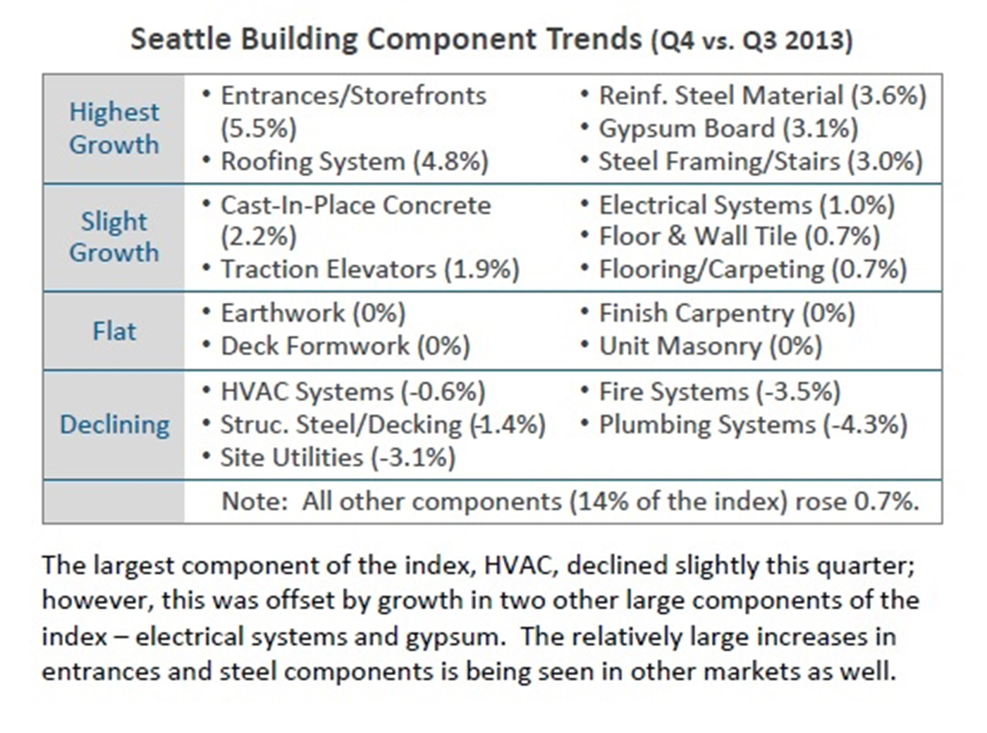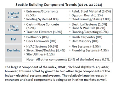 In 2007 and 2008 when the Puget Sound region was experiencing runaway escalation, commonly available indexes such as the ENR Building Cost Index (BCI) and the ENR Construction Cost Index (CCI) were showing 2 percent or 2.5 percent escalation while contractors were seeing 10 percent or 12 percent escalation in pricing. In response to the lack of accurate data and to reduce financial risk, Mortenson Construction started a new index for measuring construction cost trends.