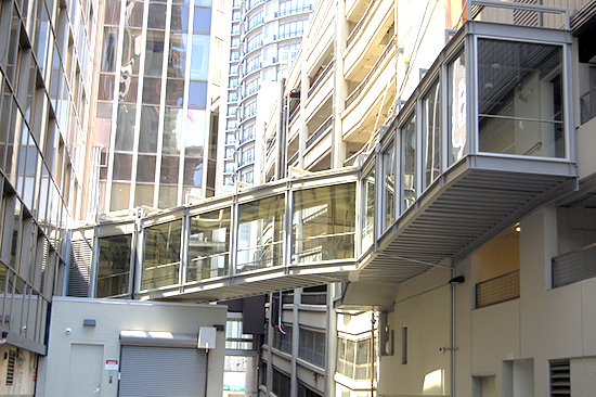 The data center itself is operated from the adjacent Westin Building. To accommodate this critical communication, a fully enclosed steel-and-glass skybridge was installed between the buildings, with additional connections to the Westin garage and the Sixth & Lenora Building.
