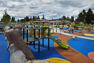 The play courts offer multiple surface types, passive and interactive play opportunities and a variety of equipment that builds motor skills including riding, climbing and balancing. Movable glass walls on the south side of each play court can be fully opened, blurring the indoor/outdoor division and providing access to the adjacent inclusive playground.
