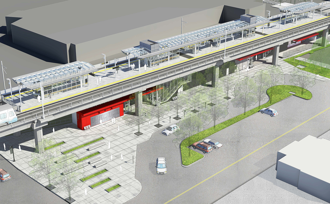 The stations would be on East Main Street, across from the existing bus-only Bellevue Transit Center, at Overlake Hospital and in the Spring District.