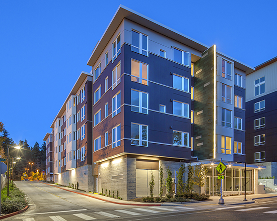 Velocity is a 58-unit affordable-housing project built on a site split between Bellevue and Kirkland jurisdictions and with ownership divided between King County Metro, a private developer and Imagine Housing, a nonprofit provider of affordable housing.
