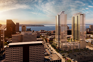 The first of two 41-story towers in Bosa Development's Insignia condo complex is complete.