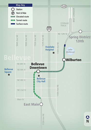 The south portal will be near 110th Avenue Southeast and East Main Street. The tunnel will run under 110th Avenue Northeast for about half a mile before turning east near Northeast Sixth Street.