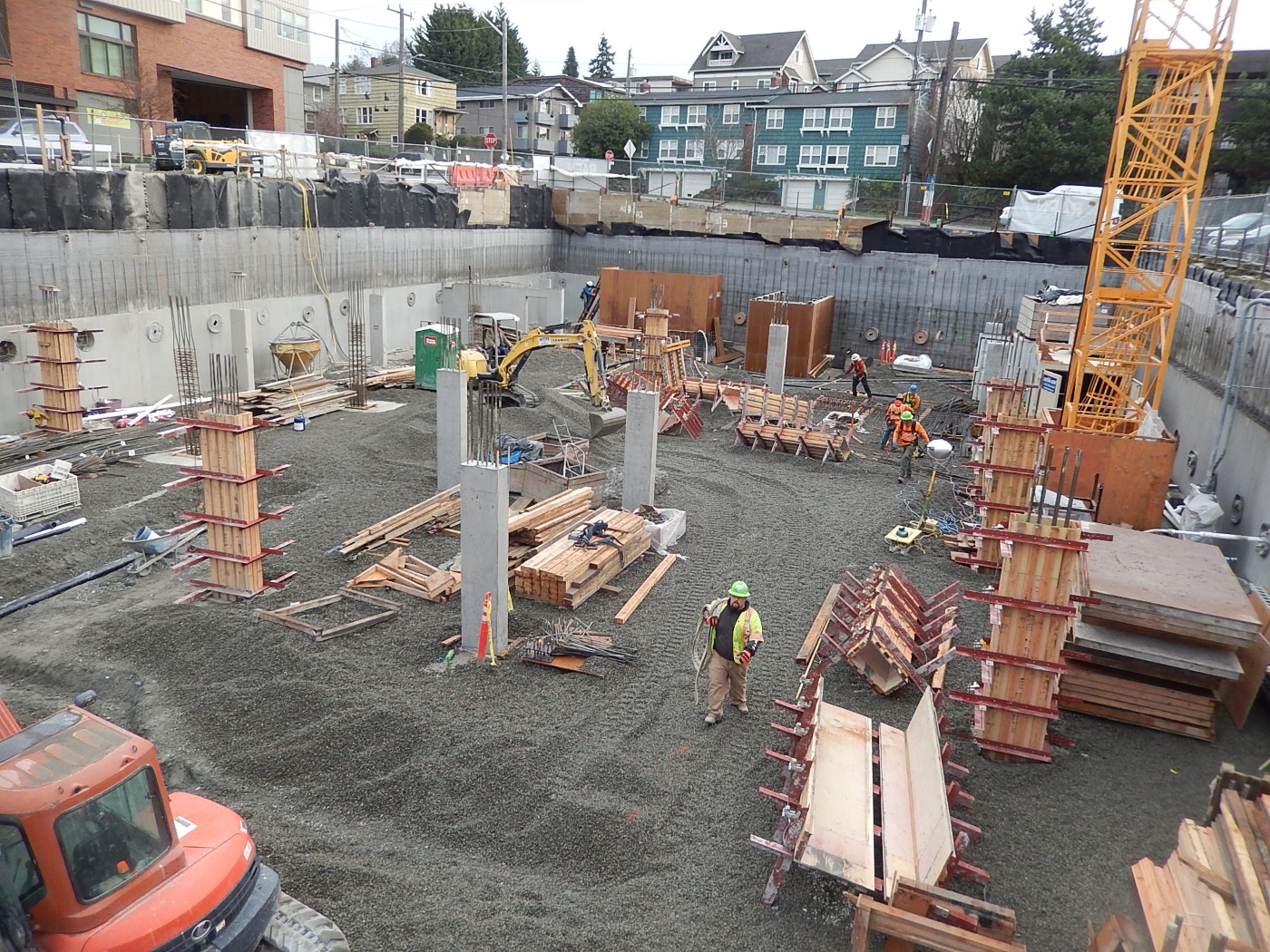 Crews from Rafn Co., the project's general contractor, recently poured the concrete mat for the building and are now setting up forms for the first elevated garage deck.