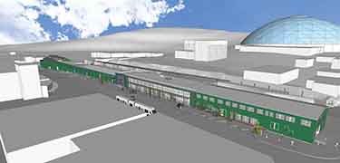 The interior will have glu-lam beams, cross-laminated timber, and lots of wood and glass. There will be a waiting room, arcade, mezzanine and baggage room.