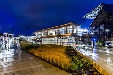 UW Station and its associated public spaces connect a complex of major campus elements and urban pathways, making a civic-centered contribution to the importance of rail transit to the campus community. The station is expected to serve 24,000 transit riders per day, in addition to thousands more bicycles and pedestrians using the bridge, together forming a critical new component of Seattle’s transportation network.
