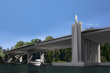 The intent of the bridge design is to harmonize with other corridor projects to create a unified corridor aesthetic along the path between Interstate 5 in Seattle and Interstate 405 in Bellevue.