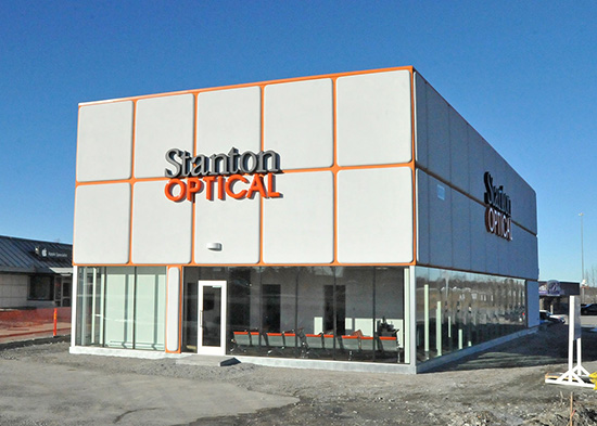 For Stanton Optical, Bradshaw & Associates partnered with Dryvit, Polar Supply and Plasterers Local #867 to create a unique and modern structure showcasing the many facets of EIFS.