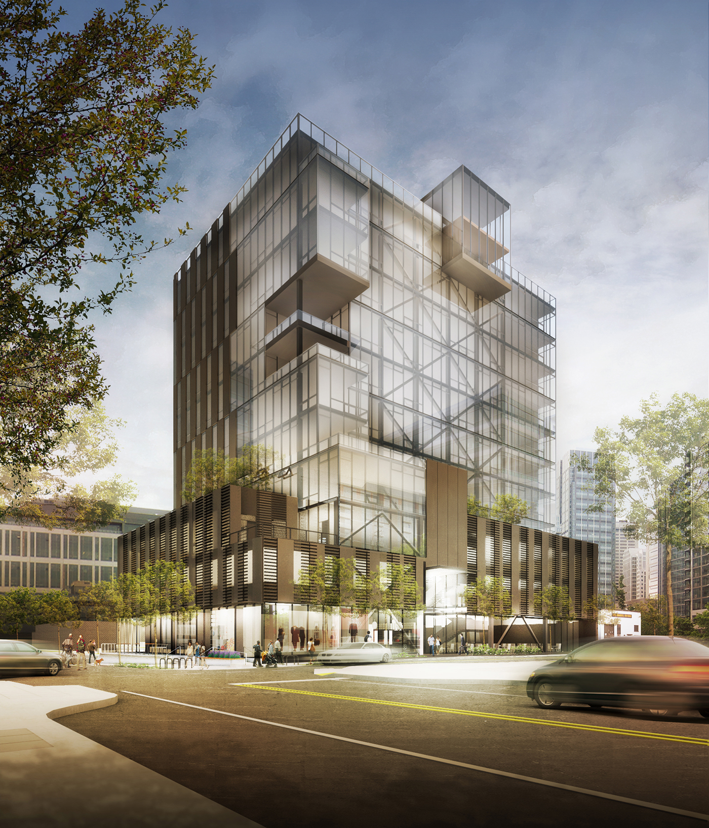 Each floor will have a different design. Some floors will cantilever over others, and there are a variety of outdoor spaces. Floorplates will range from 13,000 to 20,000 square feet.