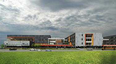 Once complete, the school will accommodate 2,300 students in a 355,000-square-foot facility on a 34-acre site. That’s half the size of a typical campus for this large of a school.