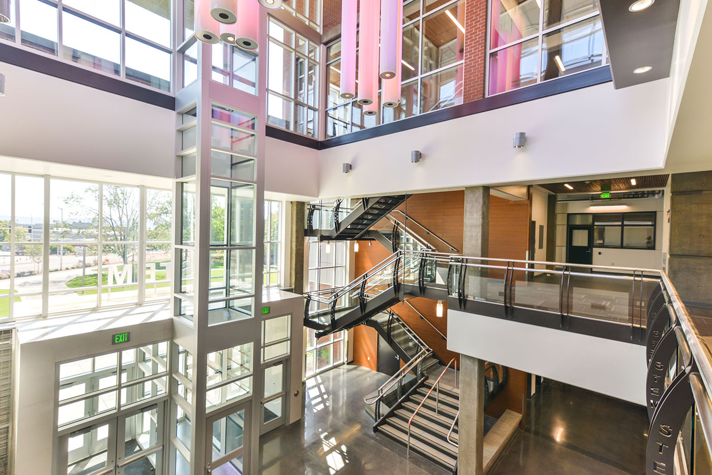 • Views: Transparency into learning spaces allows for views of teaching and learning activities, generating additional interest in STEM programs of study. The increase of educational transparency between programs also helps to create a true cross-disciplinary atmosphere.