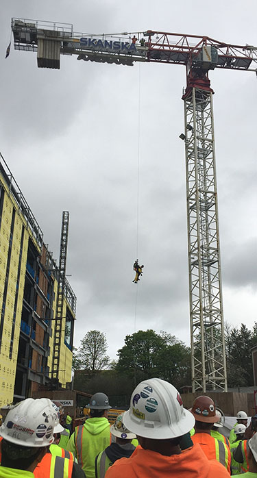 Guardian Fall Protection instructor Doug Boehm was on the University of Washington campus to show construction workers how to lower an injured worker from the top of a tower crane.