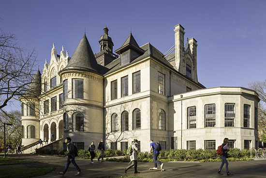 Denny Hall was originally built of heavy timber and load-bearing stone in 1896. Its exterior of sandstone, brick and terra cotta still honor its pioneer-era heritage.