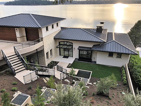 The home’s exterior was wrapped with the luxurious high-end line of Sto Corp.’s Gold Coat, which is a fluid-applied air and weather barrier. A layer of 60-minute building paper was then applied, followed by a carefully crafted drain screen by Sto.