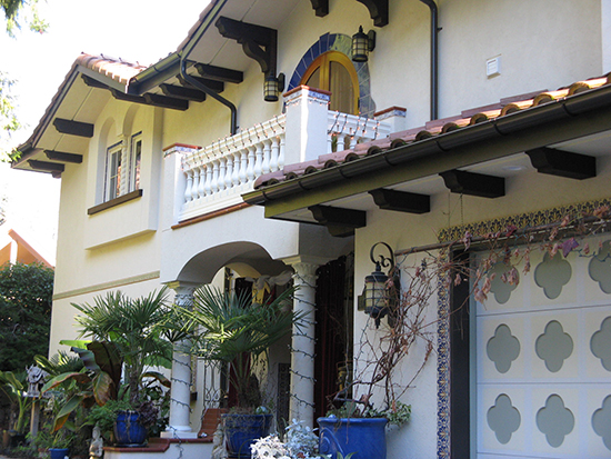The architectural design by William Zimmerman Architects was inspired by the owners’ travels through Spain, Morocco and the Mediterranean. Terracotta tile roofs, decks and wall caps enhance the stucco exterior. Flowing stucco arches, column detailing, and tile accents at window and door surrounds add color and a clean look to the design.