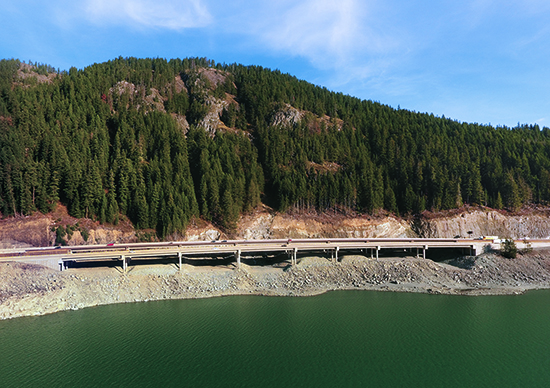 The Jacobs design team worked with nature rather than against it to design a span that would create a safe passage between a steep mountainside and a lake amidst winter snowfall and often heavy traffic.