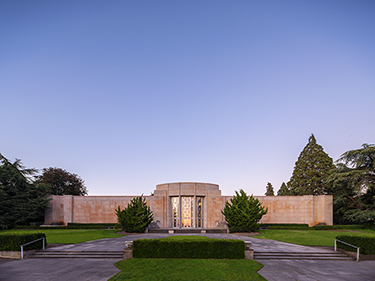 The original art deco building, built in 1933 and designed by the architectural partnership of Bebb and Gould, featured the Fuller Garden Court and dramatic entry lobby.