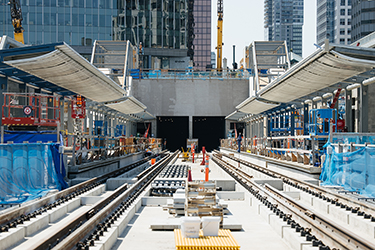 Atkinson used the sequential excavation method to build the tunnel, using track-mounted excavators and cutting equipment to remove soil in small sections, and supporting excavated areas with shotcrete. Crews then applied waterproofing, and constructed the center wall and final concrete lining.
