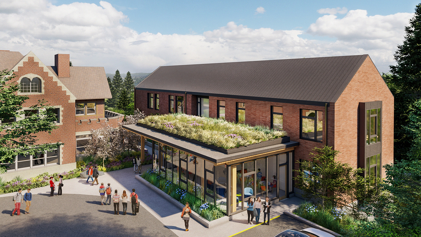 Another urban campus, the Bush School is aiming to foster stewardship through the integration of natural materials and elements in its upper school expansion. Observation and teaching porches provide opportunities for meaningful connection with the natural and urban environment as part of the learning process. Integrated stormwater strategies on display serve as keen reminders of the watershed location of this campus and its role in habitat protection.