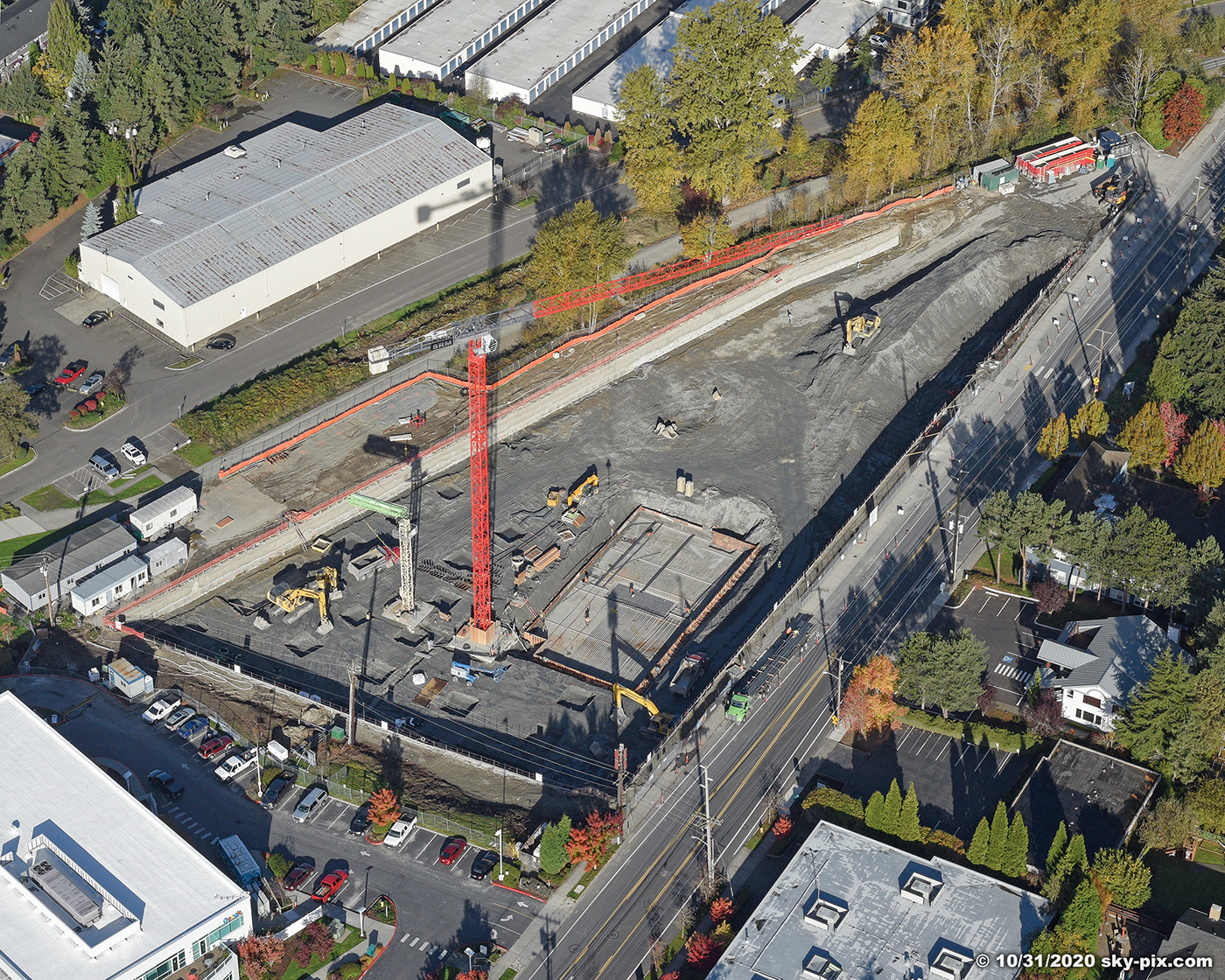 General contractor Foushee earlier this month poured 1,600 cubic yards of concrete footings for the future building at 423-533 Sixth St. S., near downtown Kirkland. The first of two tower cranes is up and the second, smaller unit is expected to arrive after Thanksgiving at the north end of the site. Foushee will also use a placing boom that looks somewhat like a mini-tower crane to dispense concrete for the building's post-tensioned decks.