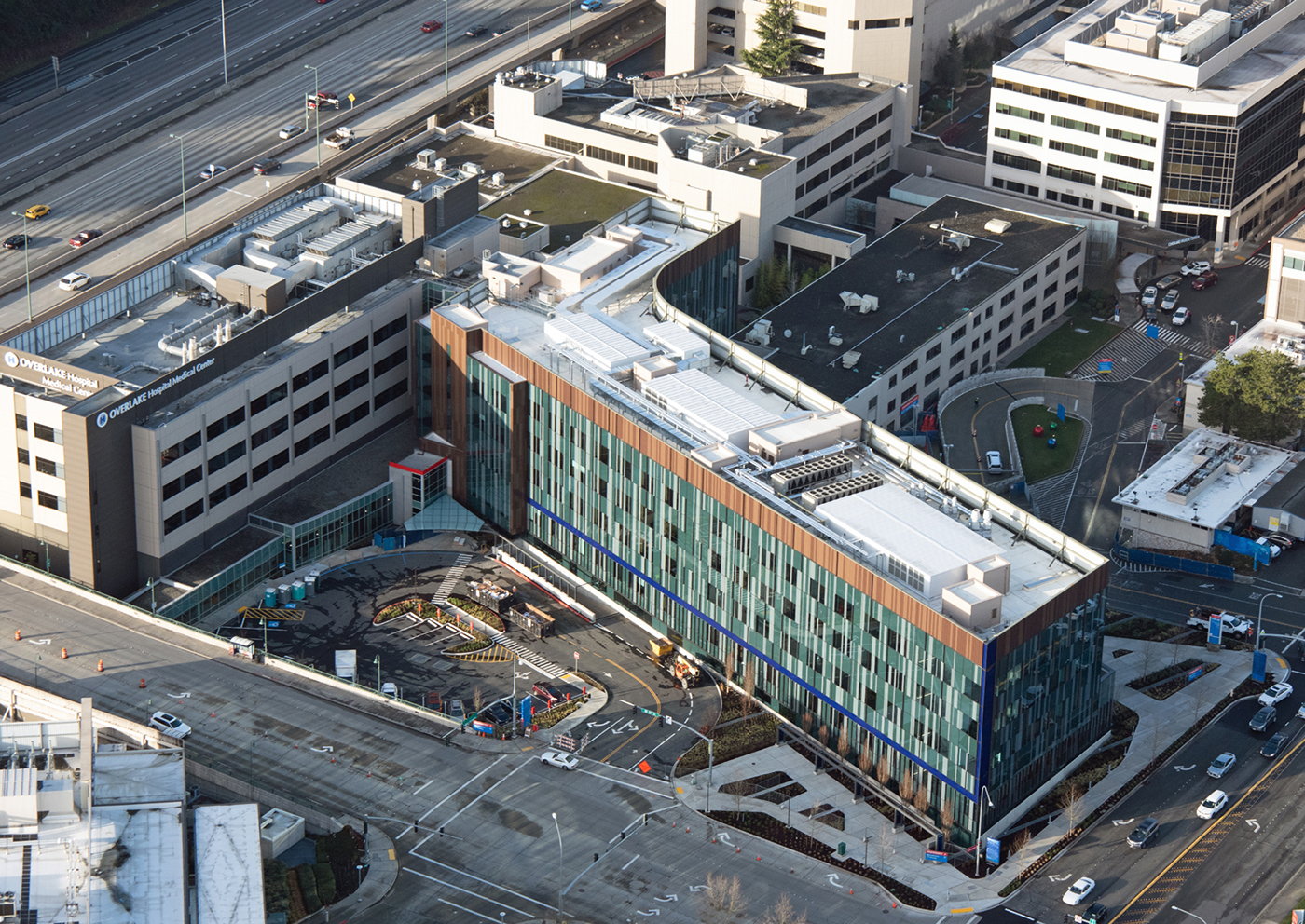 The final phase, scheduled for completion in 2022, involves construction of a connecting corridor between the new East Tower and existing main entrance, becoming Overlake Medical Center’s new front door. With a concourse-style drop-off and pedestrian-friendly pathways and wayfinding, the reconfigured campus will welcome patients and visitors from the Sound Transit Wilburton Station, two blocks away.