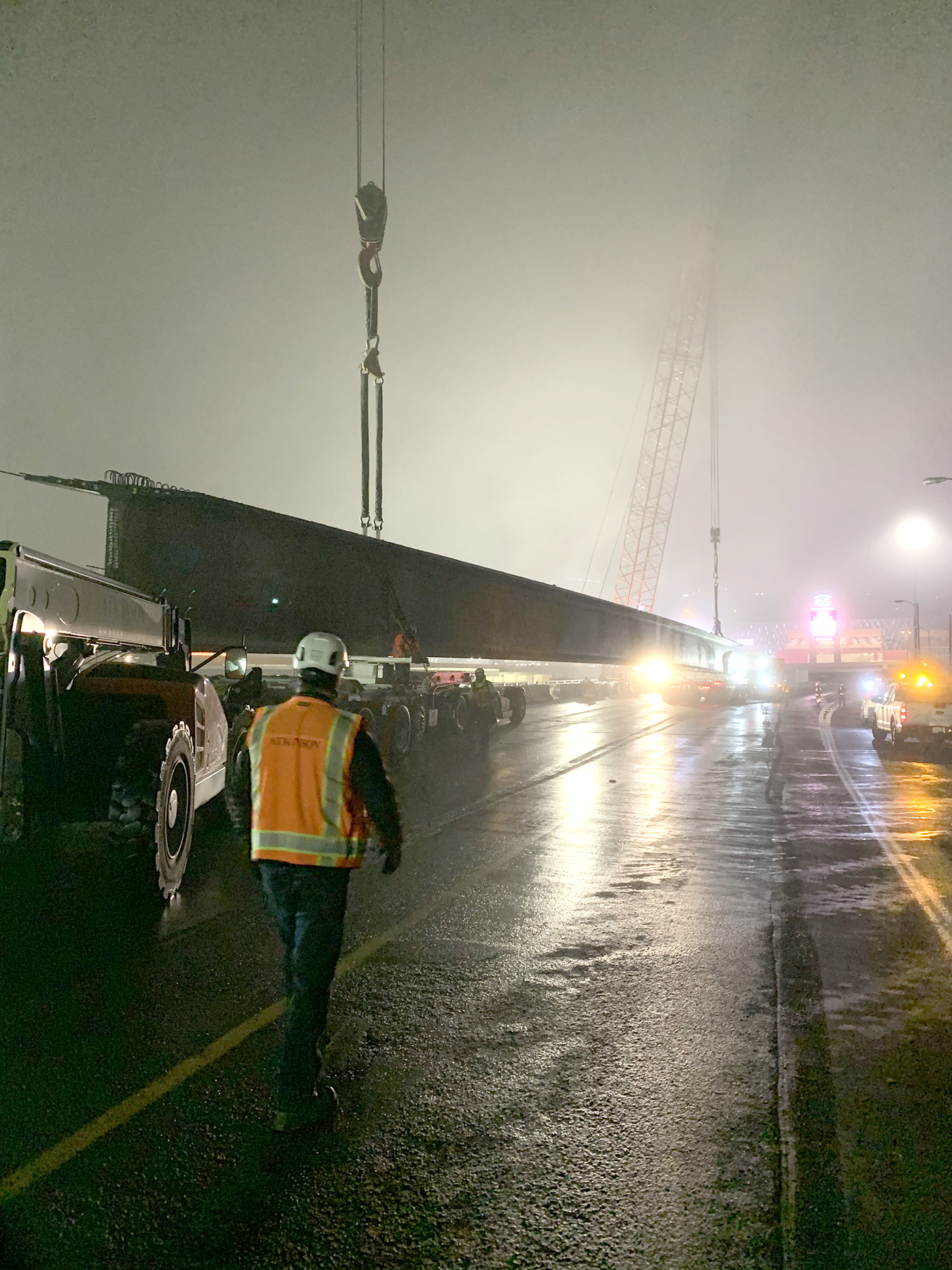 The bridge is being built with 84 girders and could open by year end. Atkinson set 54 girders about a year ago and has installed the remaining 30 this month, with the final two expected to be set last night.