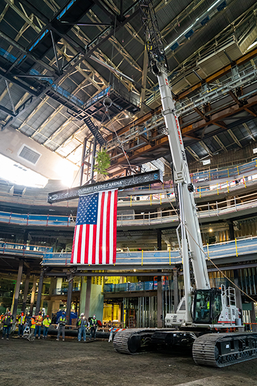 Crews led by Mortenson late last week lifted the last steel beam into place at Climate Pledge Arena.