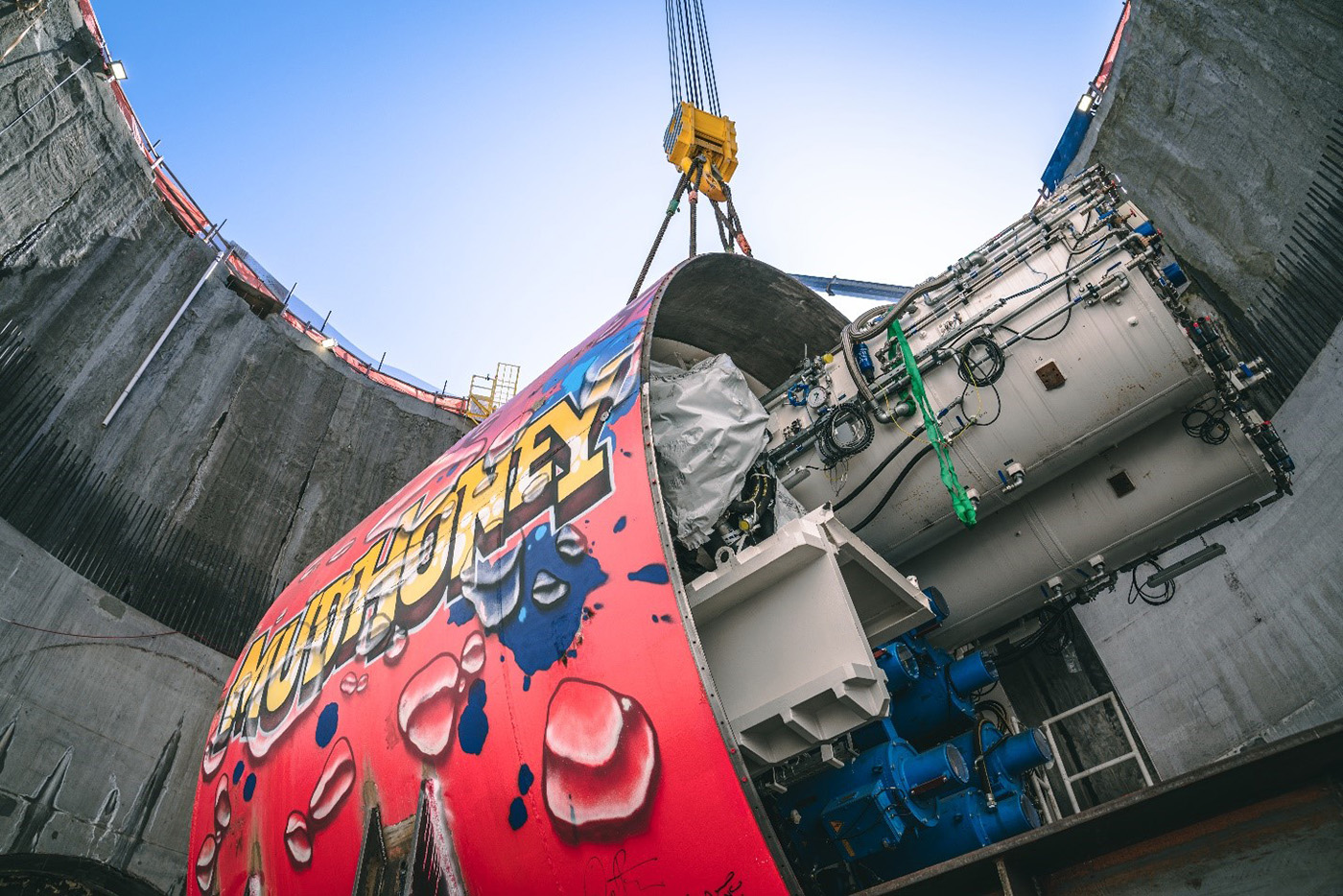 Seattle Public Utilities on Thursday posted a video of crews last month lowering the tunnel boring machine called MudHoney into its launch shaft in Ballard. The video shows the front shield being lowered first, followed by the center shield and then the cutterhead. A few days later, crews lowered the tail shield into the launch shaft. The pieces were set on a launch cradle.