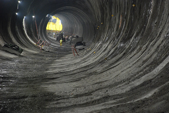 The downtown Bellevue tunnel runs from the south portal near 112th Avenue Southeast and Main Street to the north portal at 110th Avenue Northeast and Northeast Sixth Street adjacent to the Bellevue Transit Center. The work included 26,000 square feet of soil-nail wall support of excavation. The 1,985-linear-foot sequential-excavation method tunnel included tunnel pre-support lattice girders with shotcrete lining, groundwater control, waterproofing, final concrete lining, tunnel walkway, center dividing wall, embeds and conduits, and a mid-tunnel access shaft and exit. Construction of a 250-foot cut-and-cover structure was completed at the south portal. Work included utilities, pavement repair, sidewalks and signals.