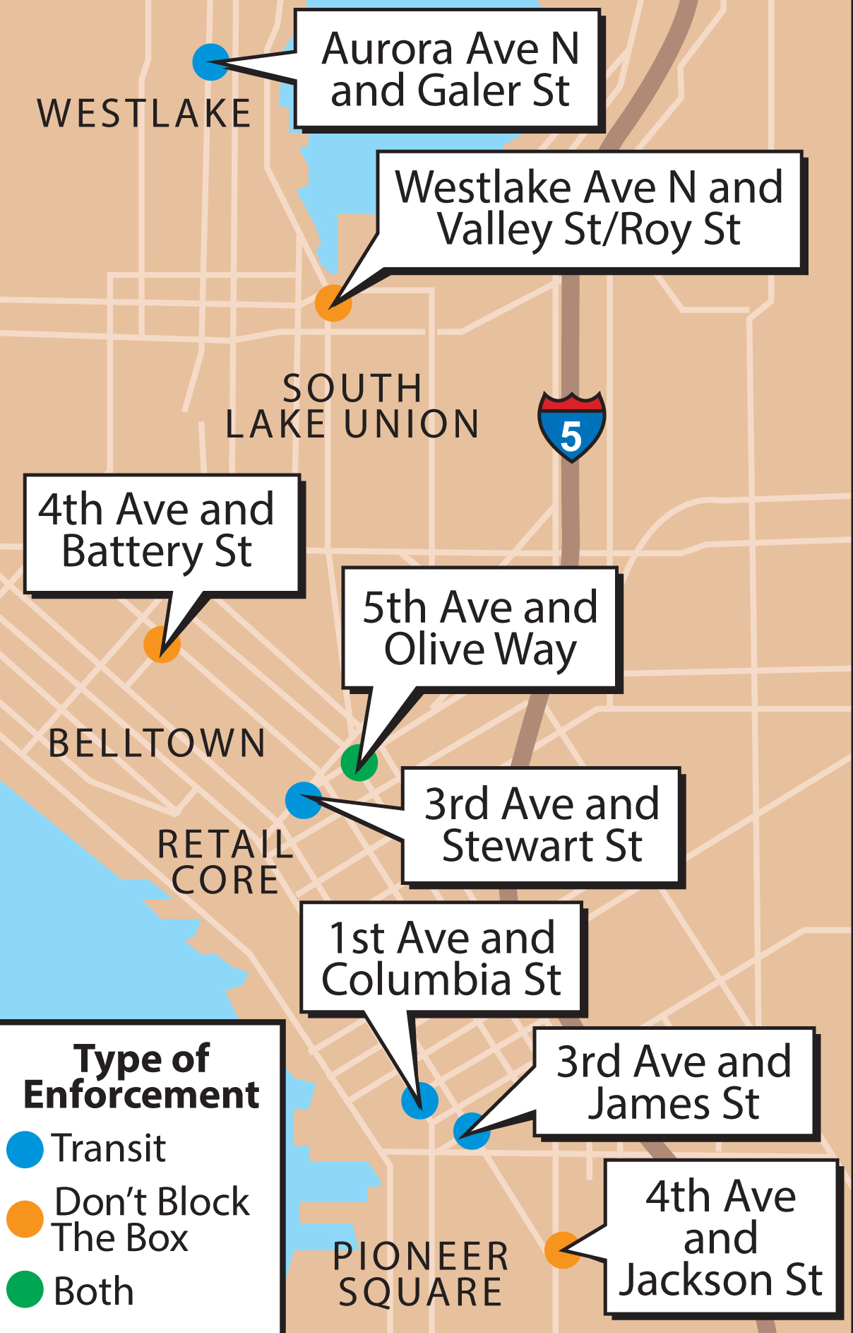 Cameras will be added to eight locations between Pioneer Square and Westlake.