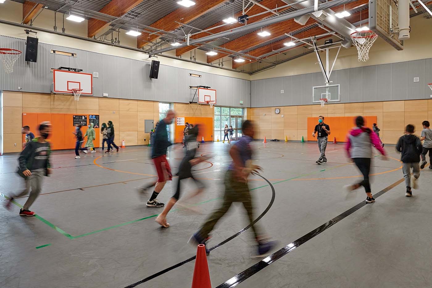 Students get a workout in the school’s gym.